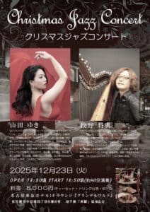 2025年12月23日(火) OP8N 18:30頃START 18:50頃(約40分演奏) 料金 8,000円(ティーセット・ドリンク付き・税サ込) 名古屋東急ホテル1F ラウンジ『グリンデルワルド』 名古屋市中区栄四丁目6番8号 地下鉄「栄駅」徒歩5分
